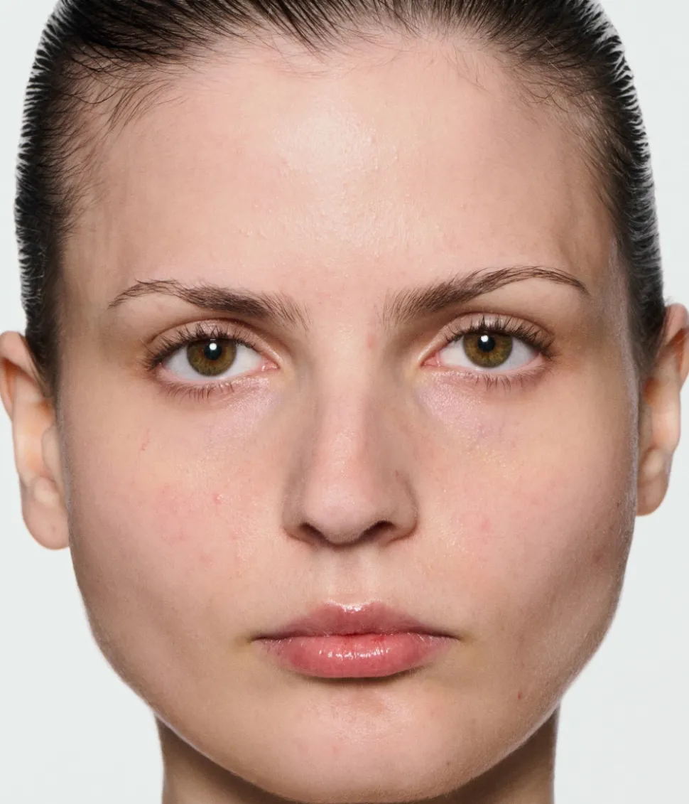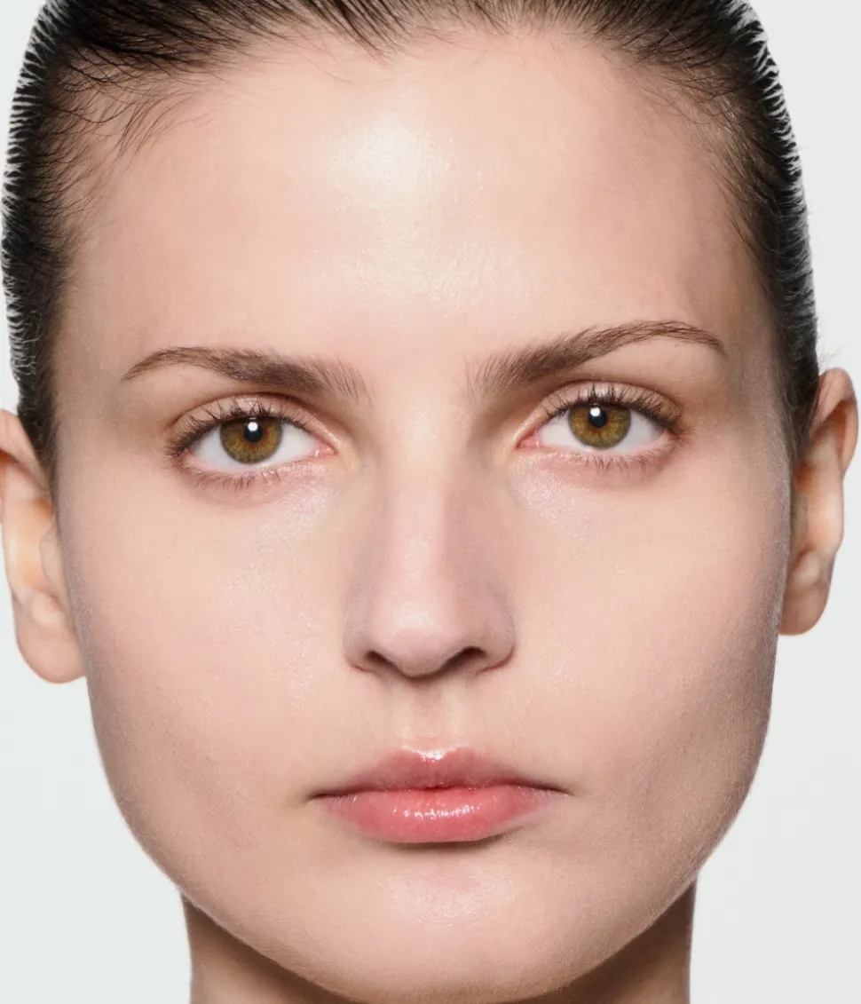 - Dra ner produkten lite mot halsen så det inte blir en tydlig linje vid ansiktet.